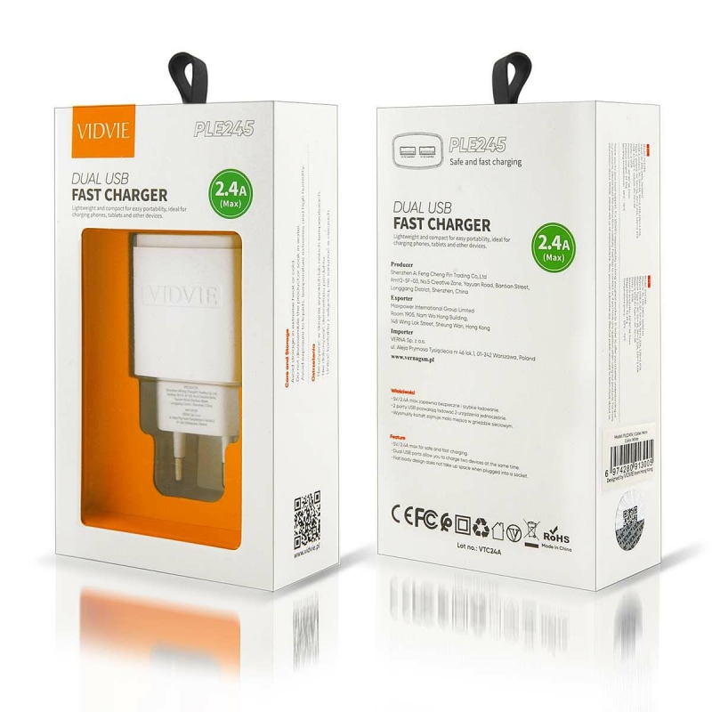 ŁADOWARKA SIECIOWA VIDVIE PLE245 + KABEL USB/MICRO