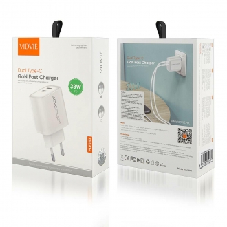 Ładowarka sieciowa VIDVIE PLE260 2xType-C + kabel Type-C/iPhone 3A 33W GaN compatible PD20W biały